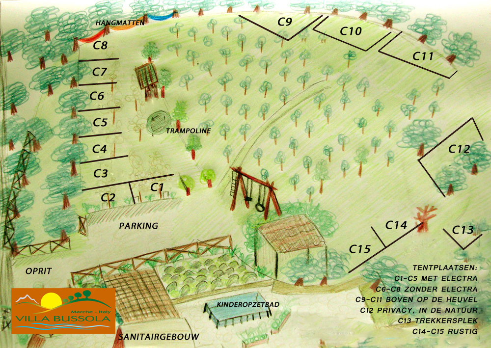 A Villa Bussola potrete "far campeggio in mezzo alla natura". Questo significa che i campeggiatori in tenda potranno scegliersi da sé un'ampio posto in mezzo alla natura dove sistemarsi sul nostro terreno di 3,5 ettari (massimo 12 tende).